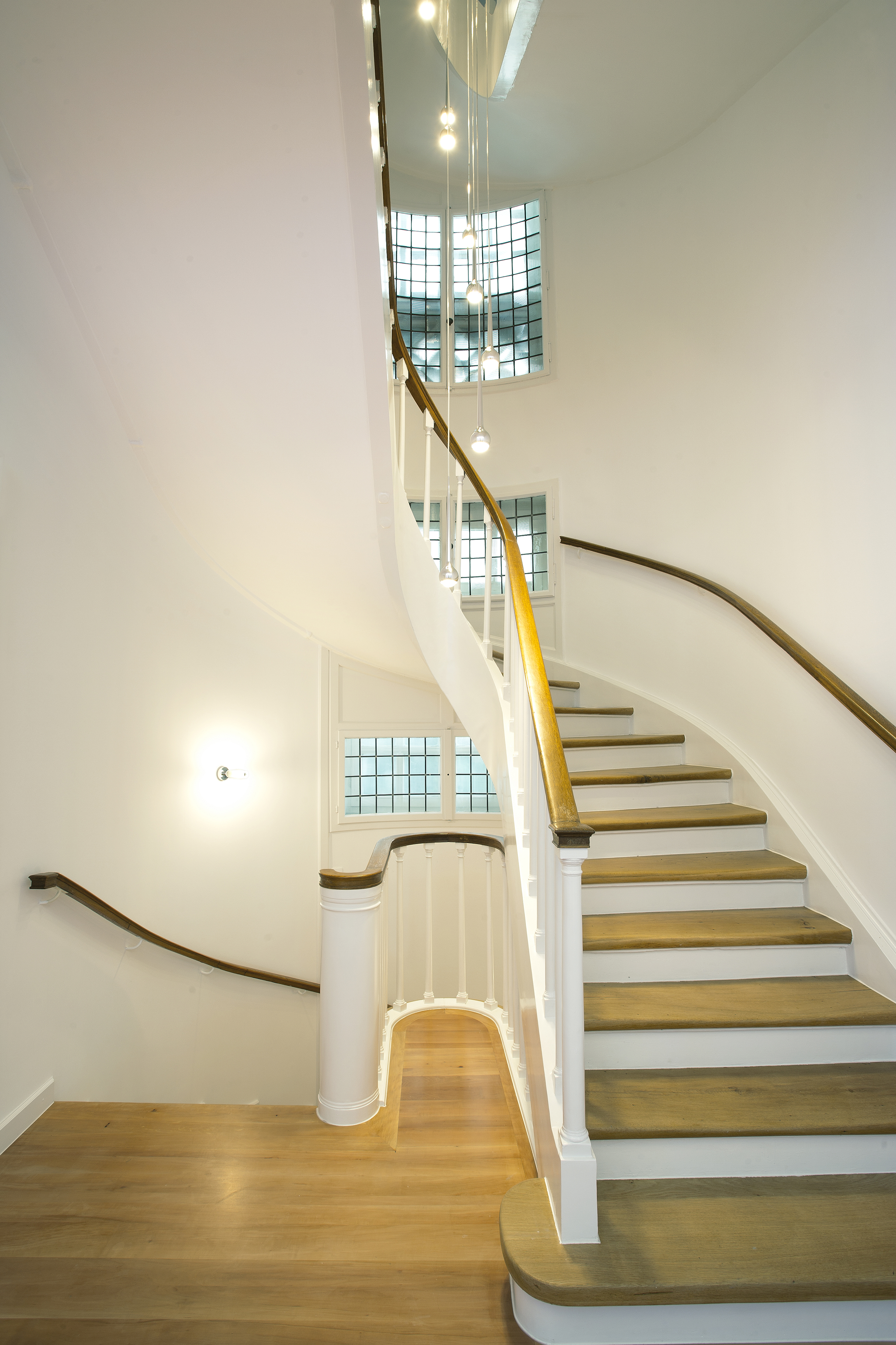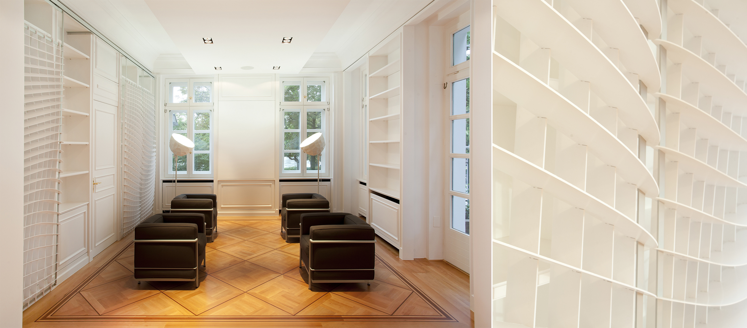 PurPur hat mit der ebenso liebe- wie effektvollen Restaurierung seinen Teil dazu beigetragen. Raffinierte, teils farbige Lichtakzente, spektakuläre Leuchten und skulpturale Elemente verleihen der klassizistischen Bausubstanz eine moderne Leichtigkeit. So entstehen besondere, der Bestimmung des Hauses angemessene Raumerlebnisse.