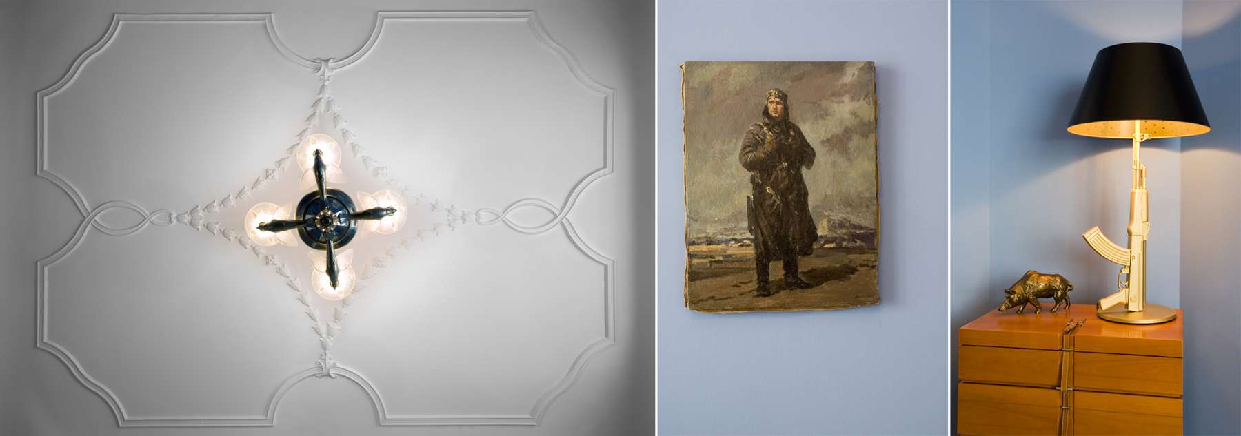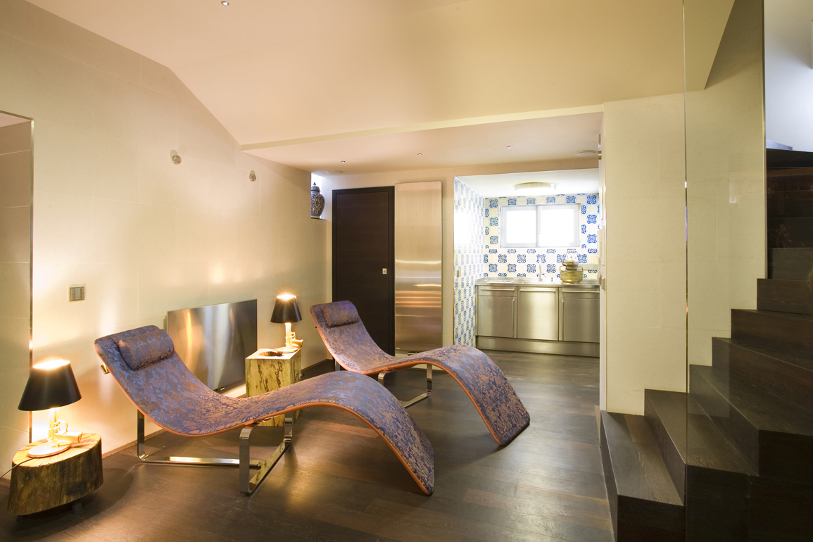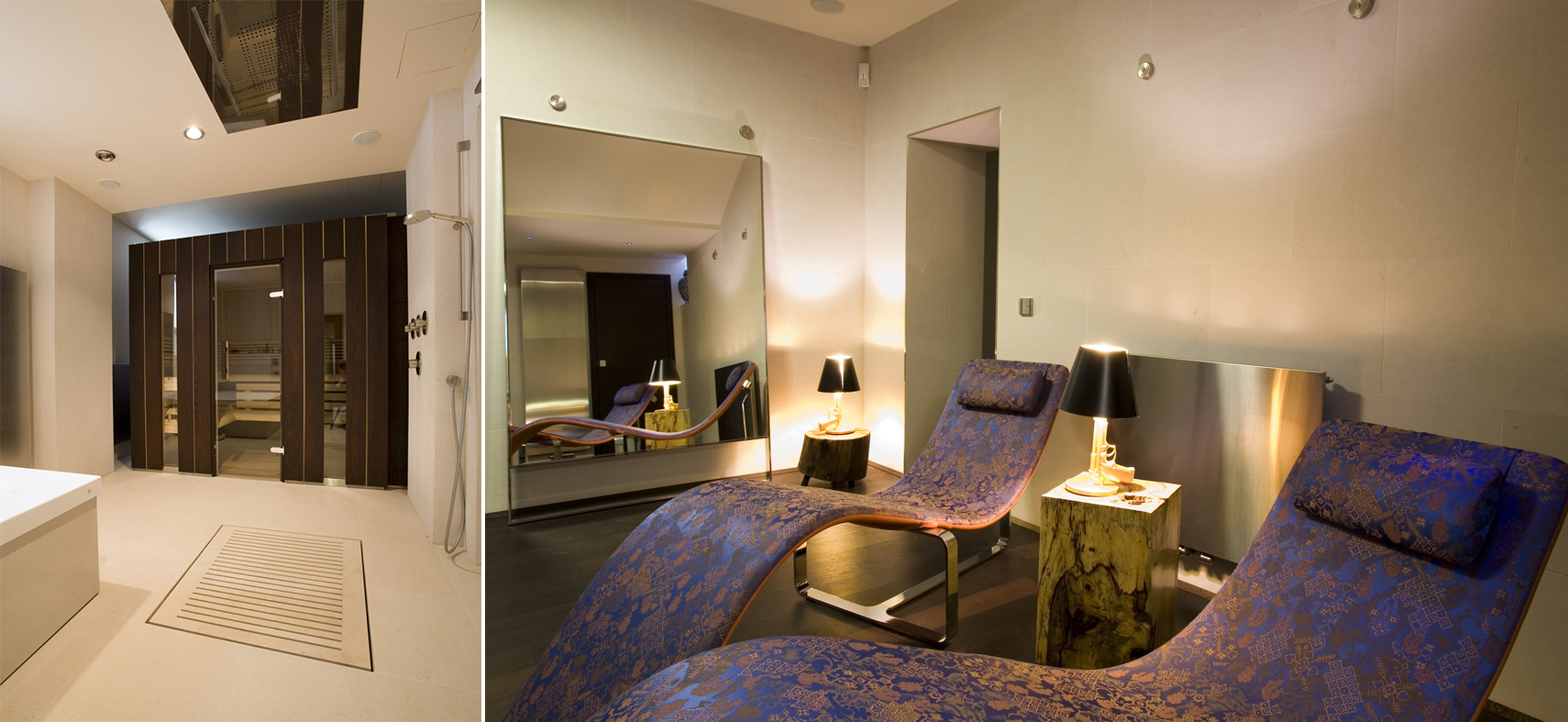Zurücklehnen in cremefarbenes Leder und eine Tapete voller Geschichten betrachten. Vor holzvertäfelter Wand den Tanz des frei schwebenden Kaminfeuers beobachten. Oder von edel geschwungenen Liegen den Blick ins nächste Stockwerk schweifen lassen.