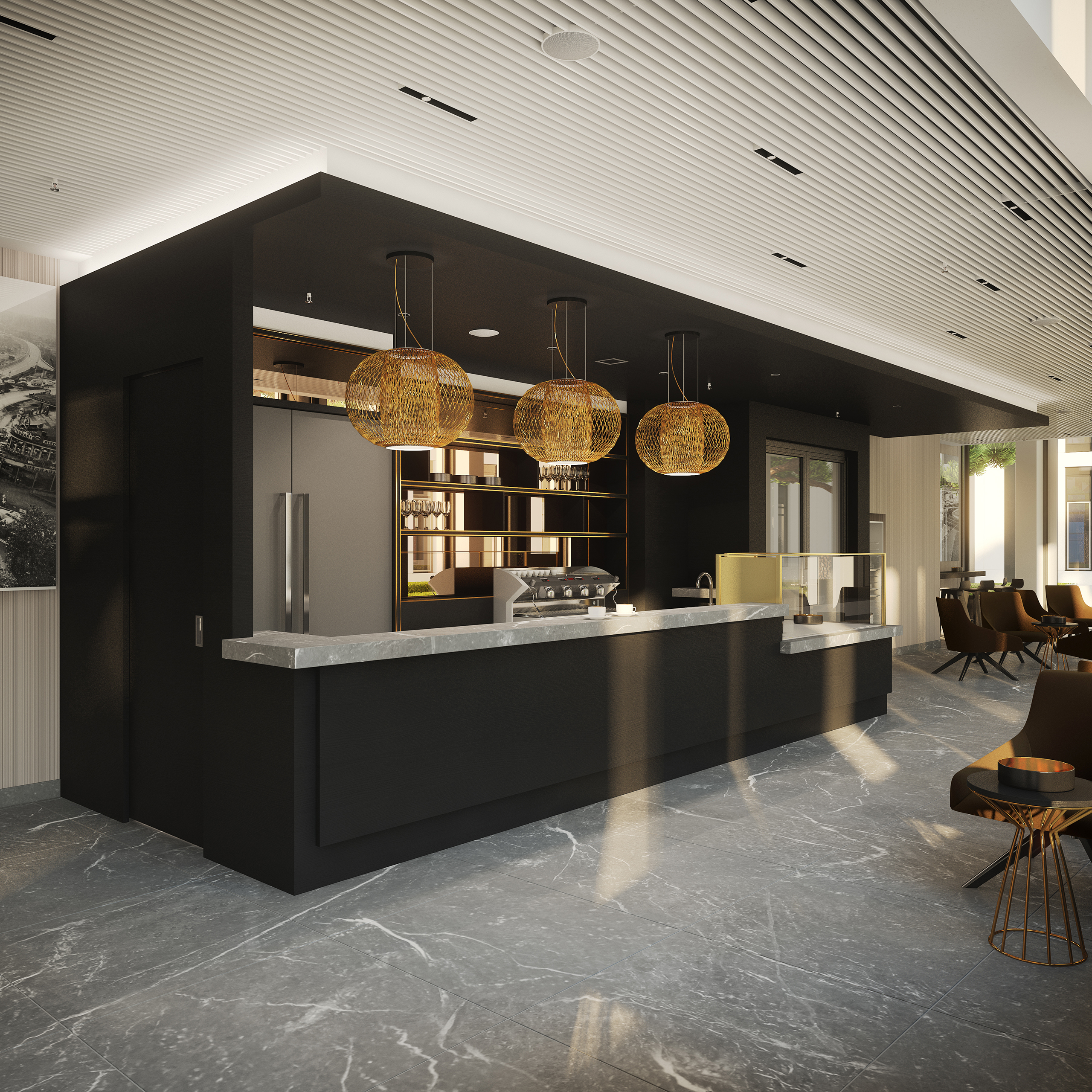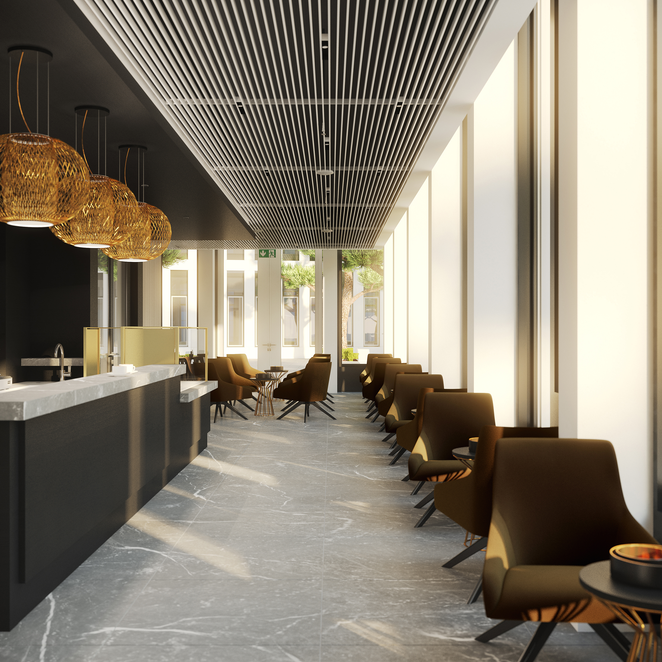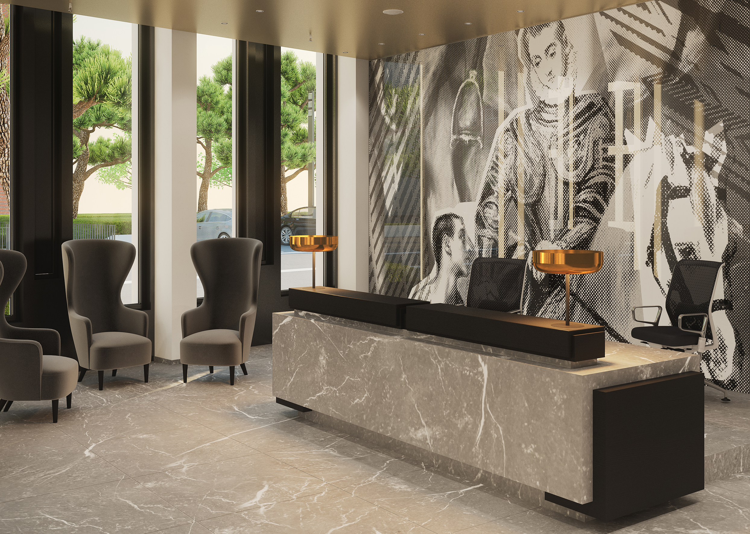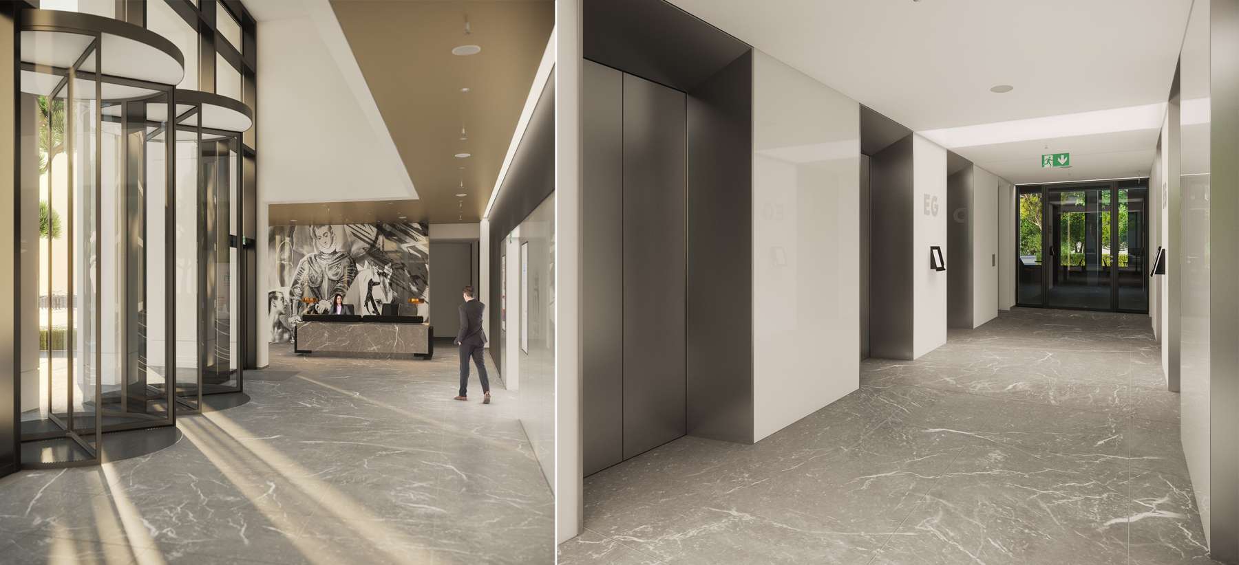 Man hat das Gefühl, ein Hotel zu betreten. Tatsächlich handelt es sich um den extravaganten Empfangsbereich des St Martin Tower.