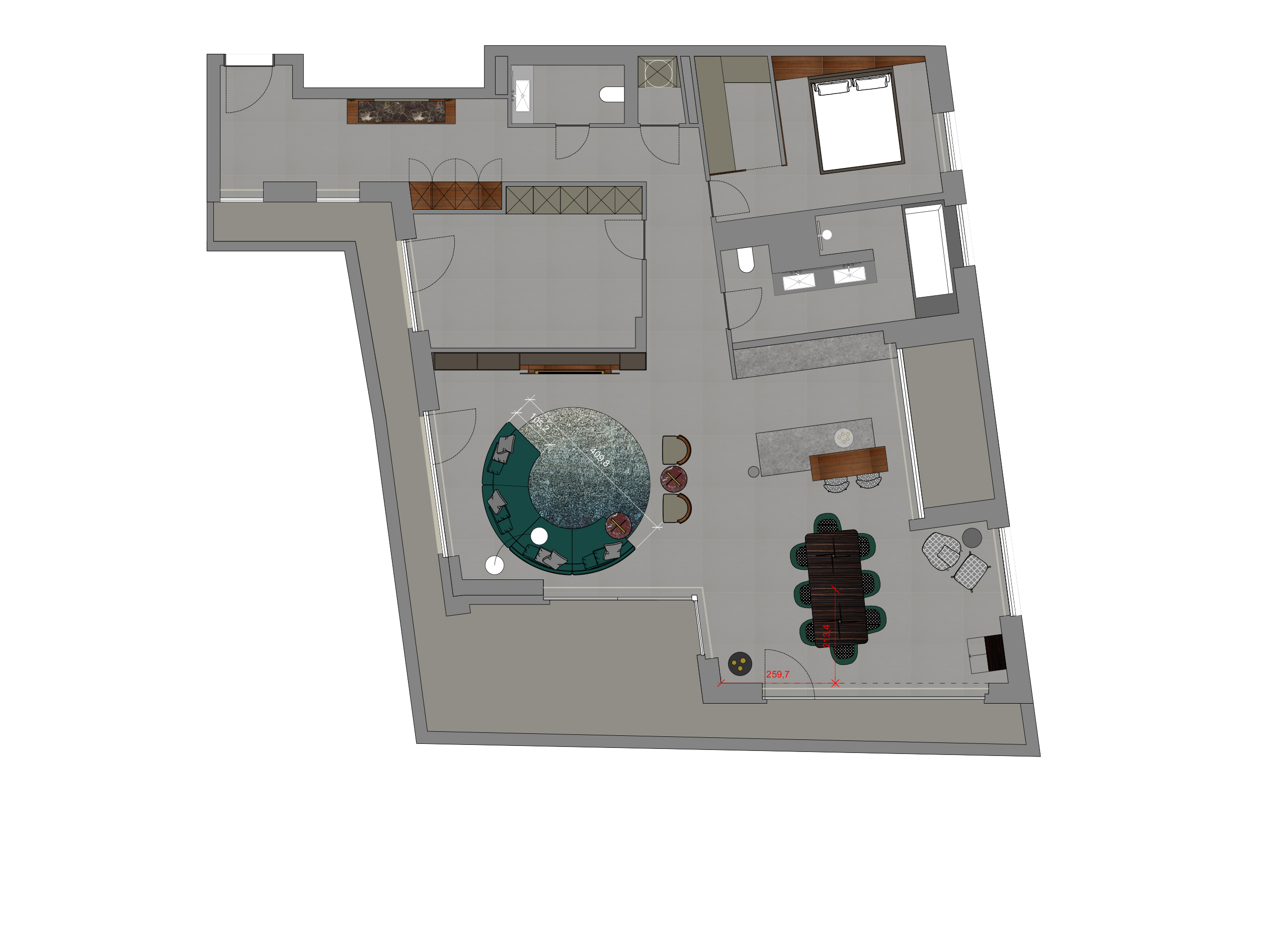 Diese Apartment ist filmreif und könnte auch in New York, Paris oder sonst wo sein. Man erlebt die Räume so, als wäre man in einem Hotel, einer Bar oder einem Restaurant.