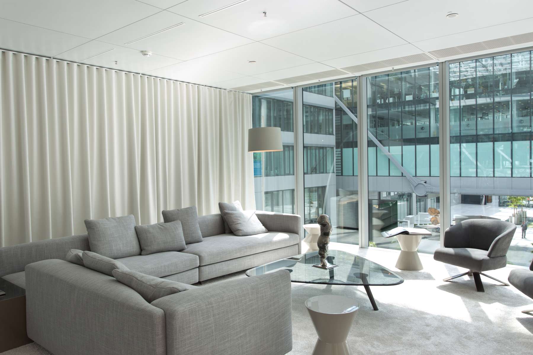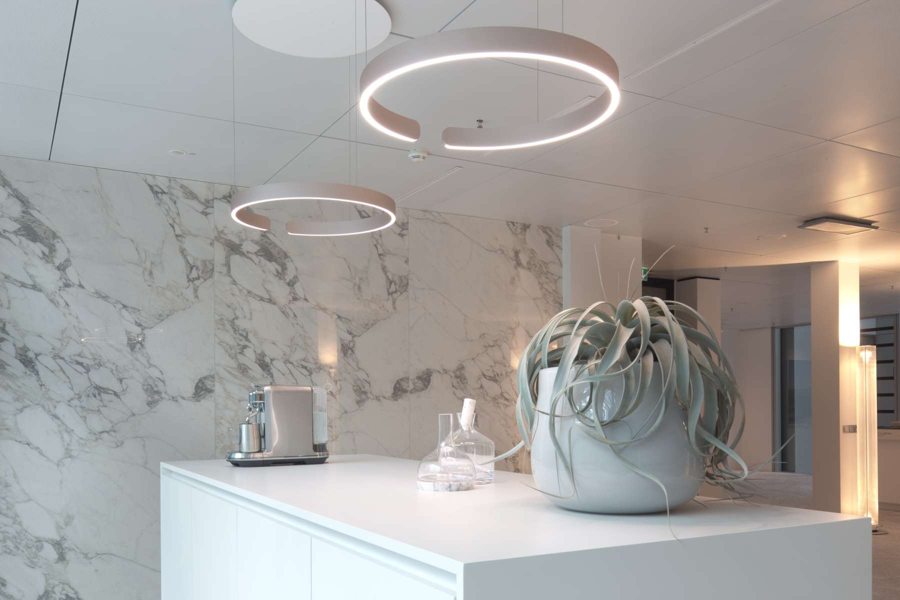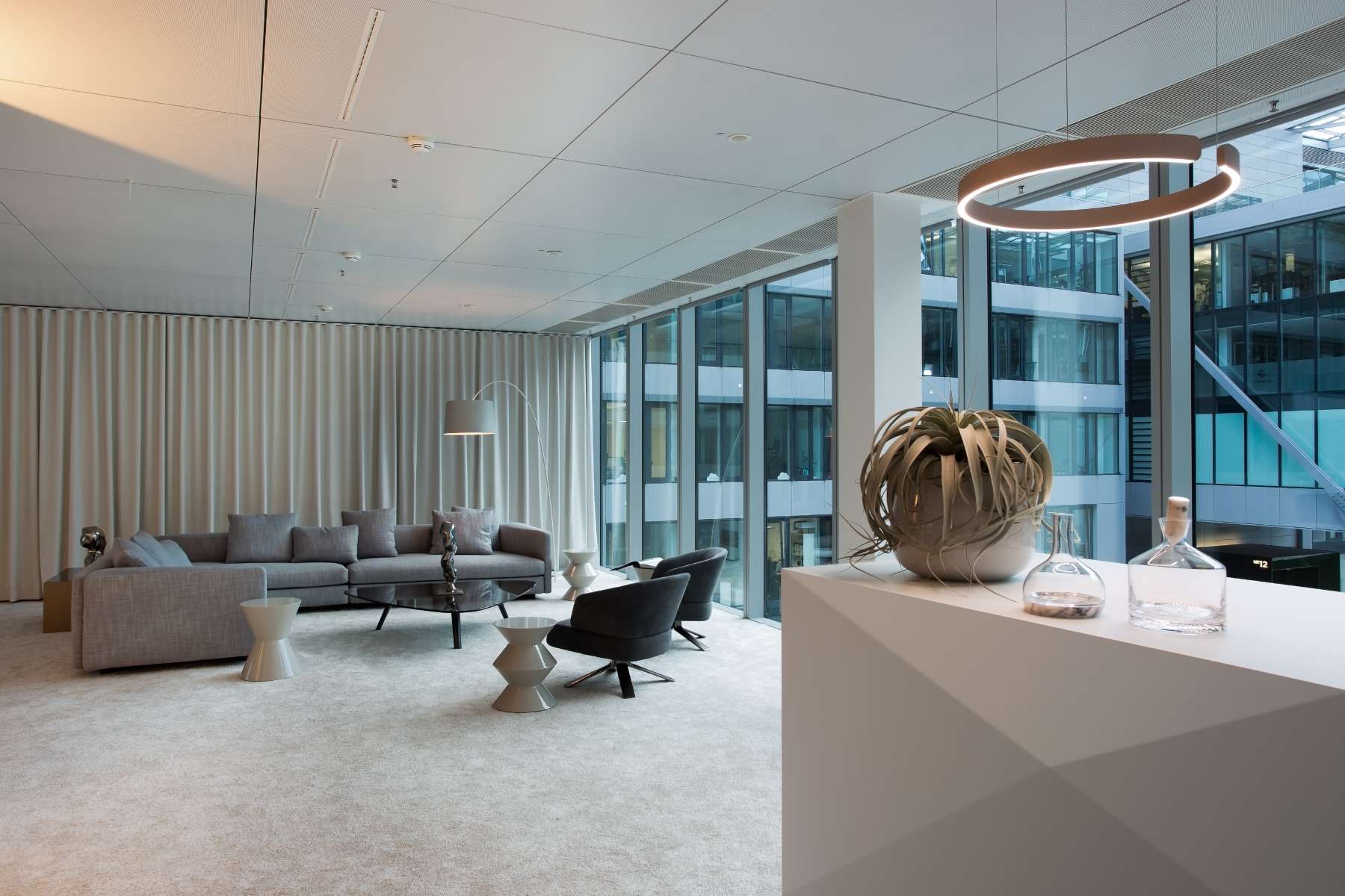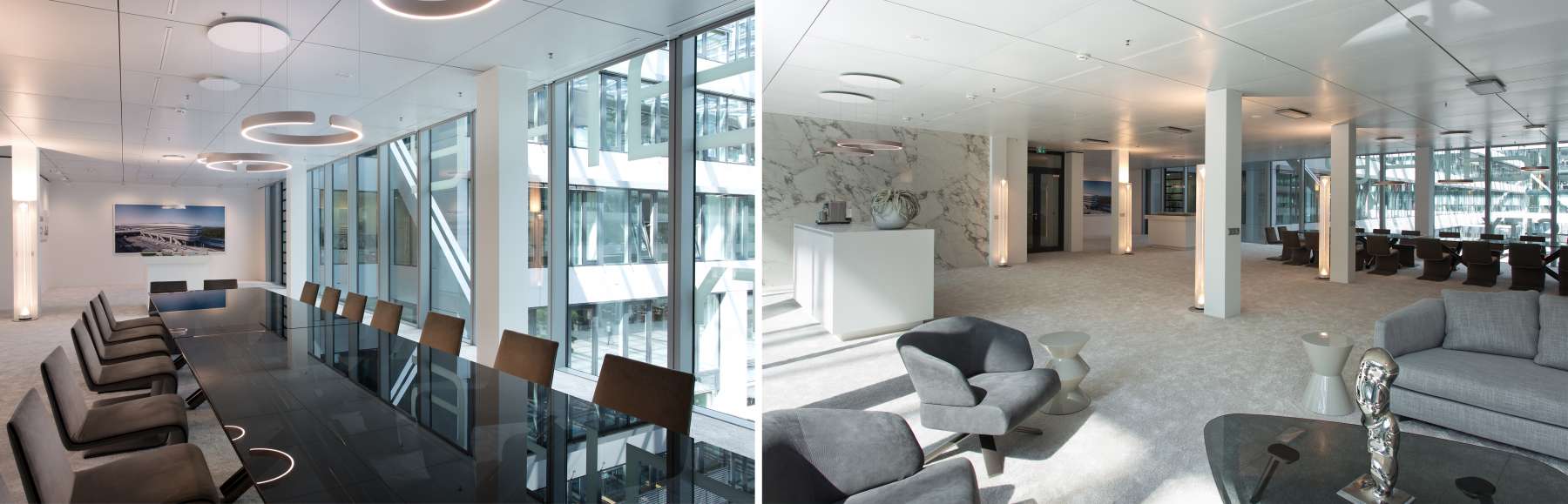 Auf 230 qm bietet diese Marketing-Suite am Frankfurter Flughafen einen Ort für Meetings in exklusiver Atmosphäre. Der lichtdurchflutete Raum besticht durch sein helles, einladendes Interior. Der hochwertige Teppich durchzieht