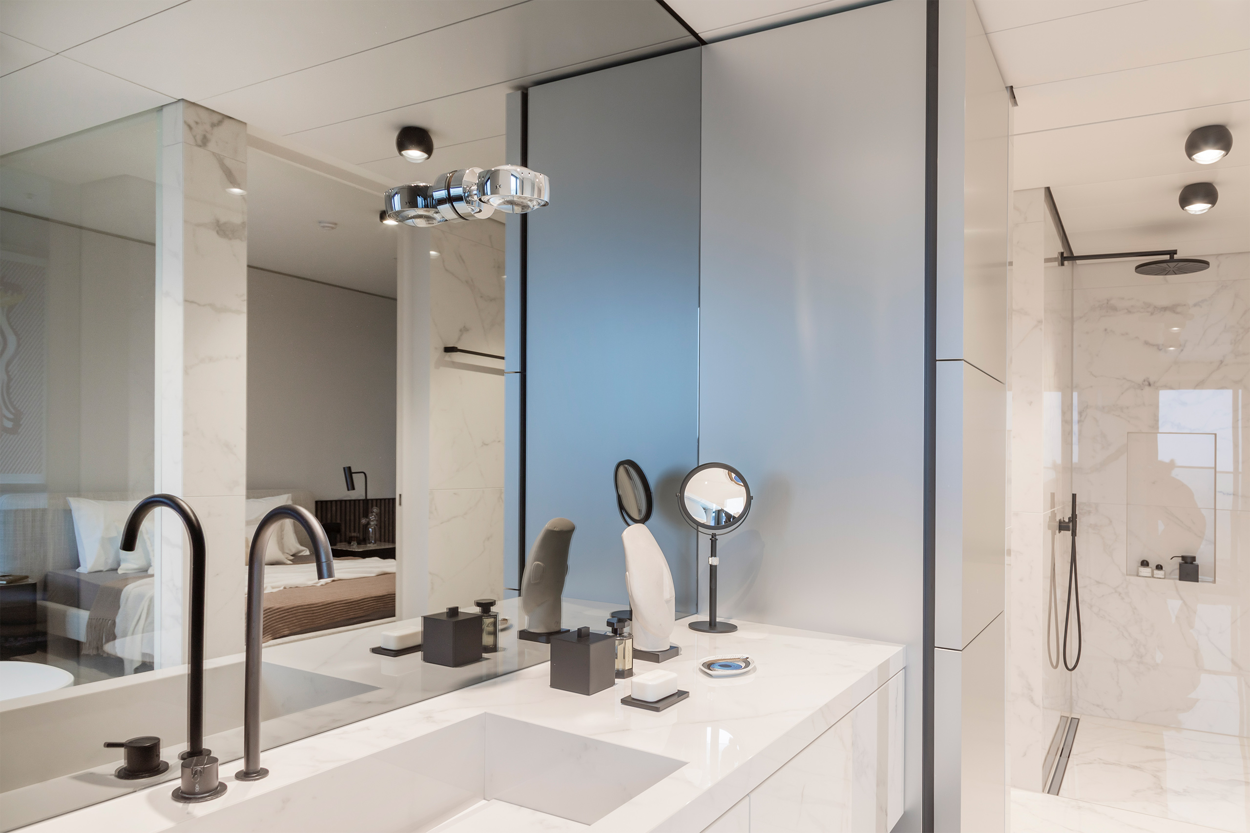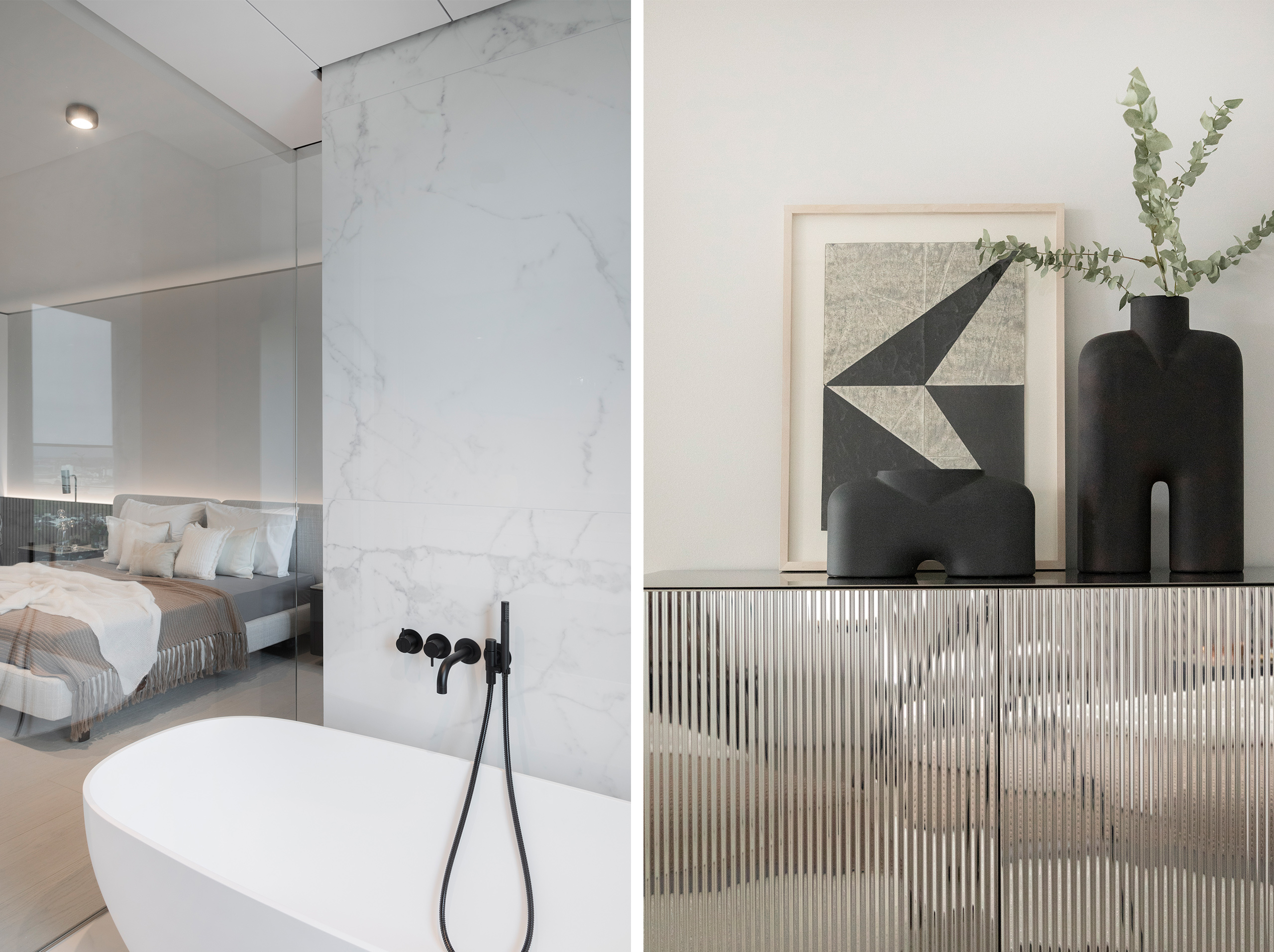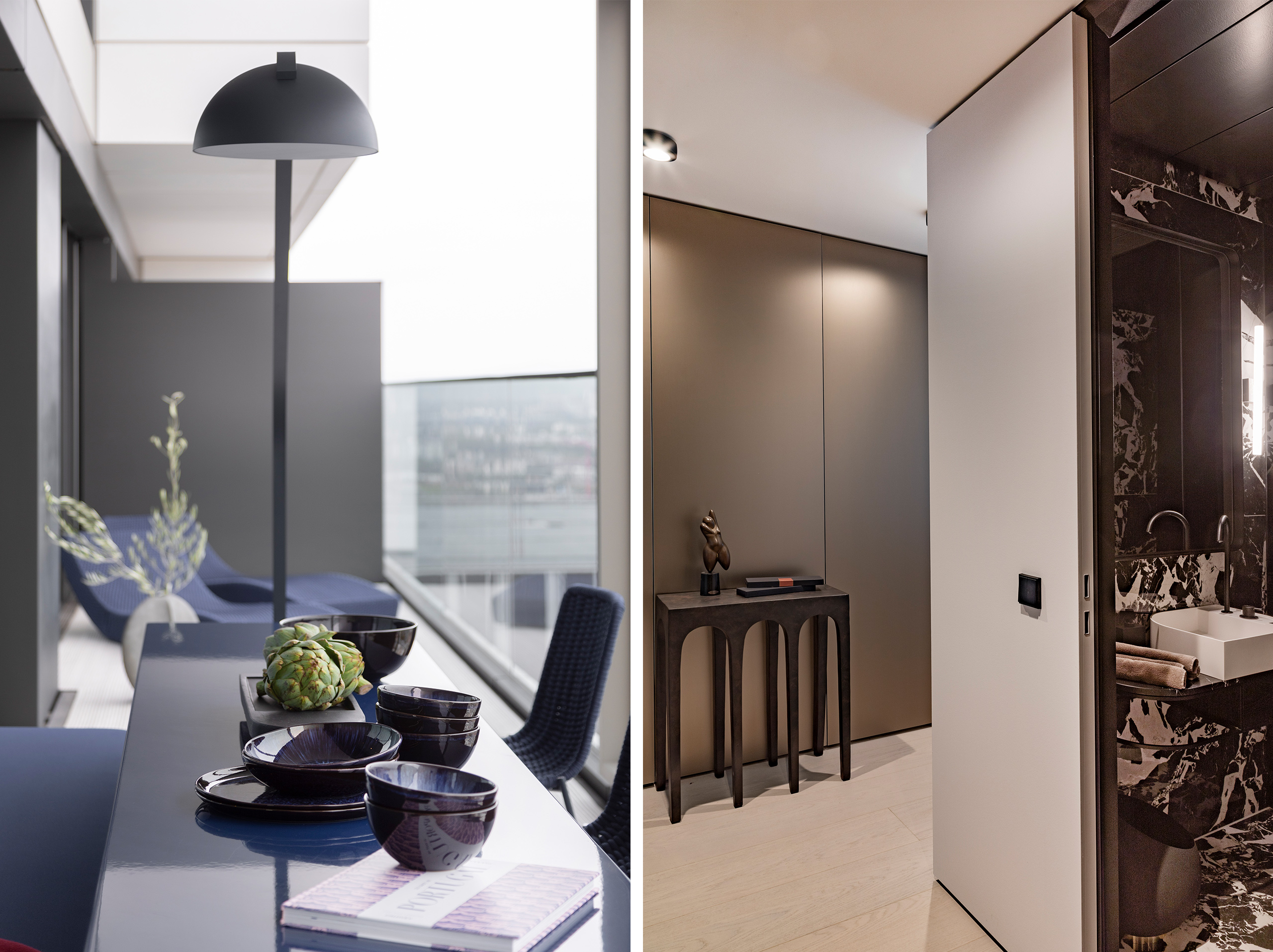 Im neuen Highlight Frankfurts, dem hybriden Wohnhochhaus OneFortyWest, entstand im 32. Stock ein minimalistisches Wohnjuwel auf 133 Quadratmetern. Hierbei standen die Schlagworte: Eleganz, fließendes Raumkonzept, Funktionalität verpackt in einem eleganten Oberflächenkonzept, Formalität gepaart mit Gefühl, kontrastreich, skulptural, Pate.