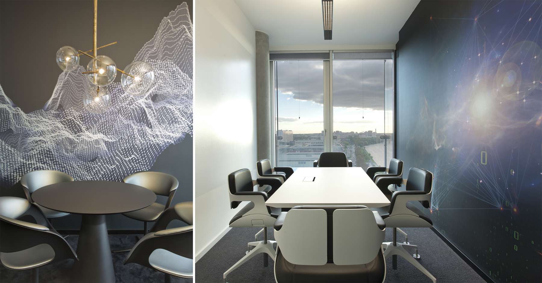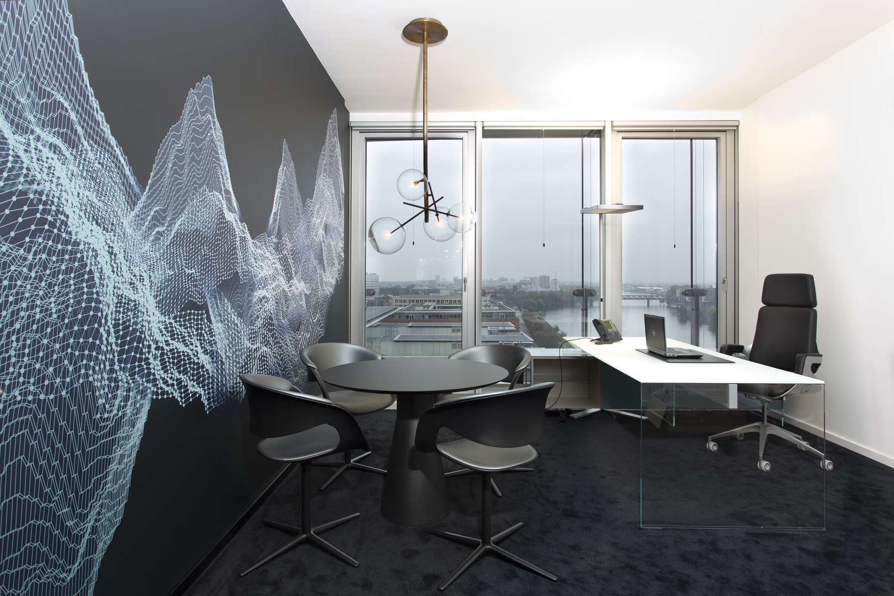 Den wissenschaftlichen Anspruch von Urban Science hat PURPUR mit nonchalanter Selbstverständlichkeit in ein visionäres, innenarchitektonisches Konzept übertragen. Technisch wegweisende Materialien treffen auf eine klare, moderne Linienführung. Das offene Konzept der Räume setzt sich in der Unendlichkeit der Aussicht auf atemberaubende Weise fort. Bahn frei für Ideen auf höchstem Niveau.